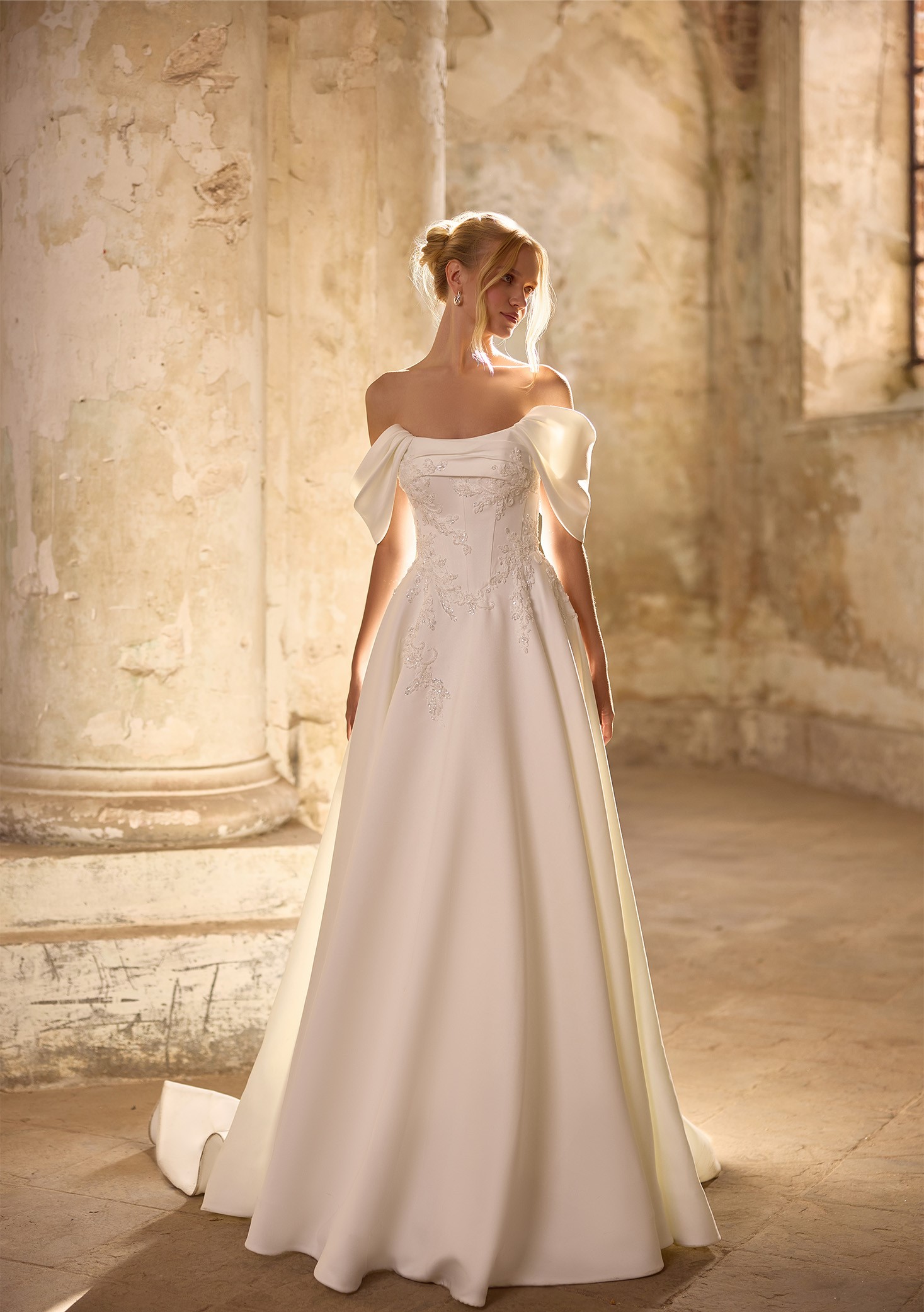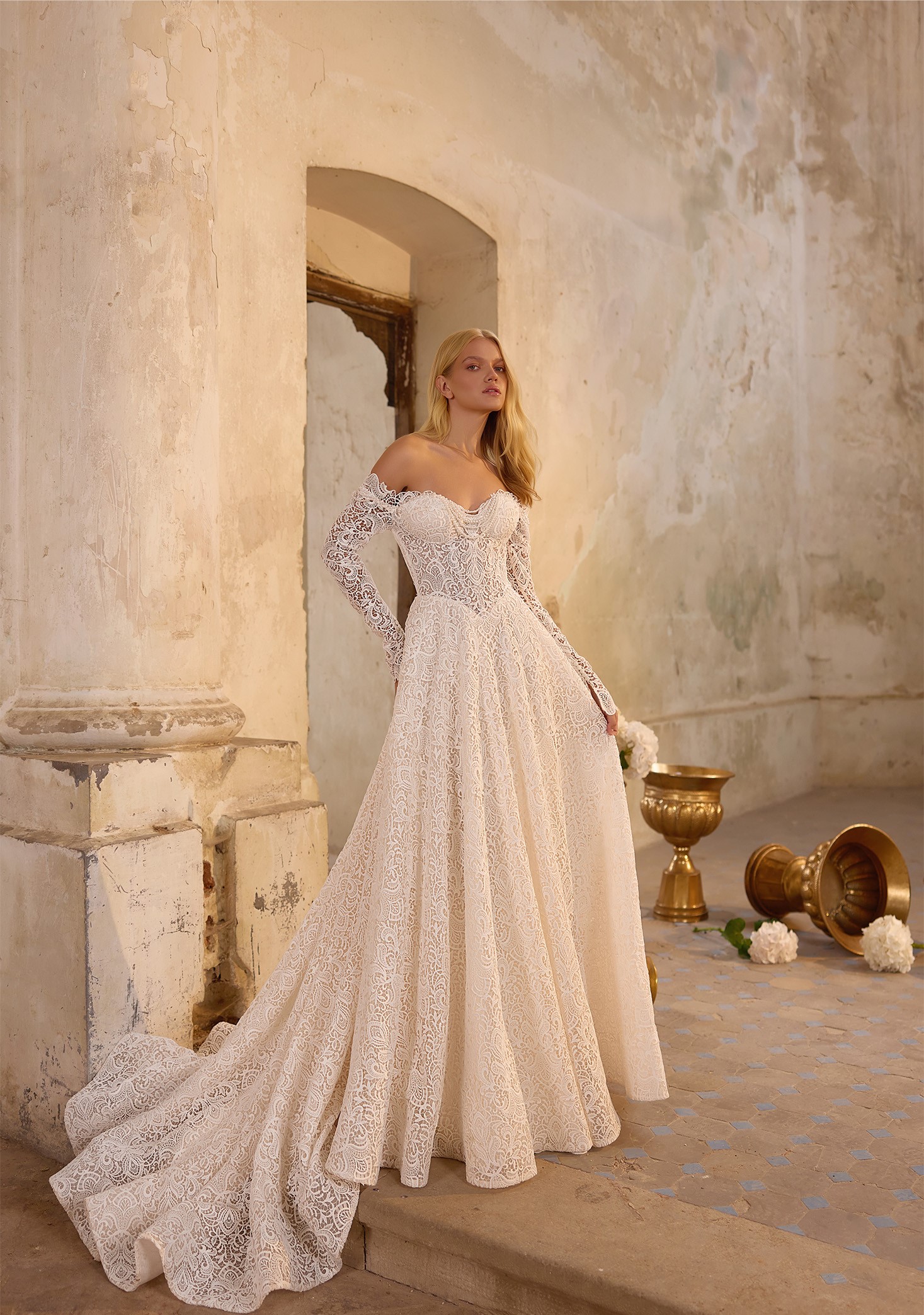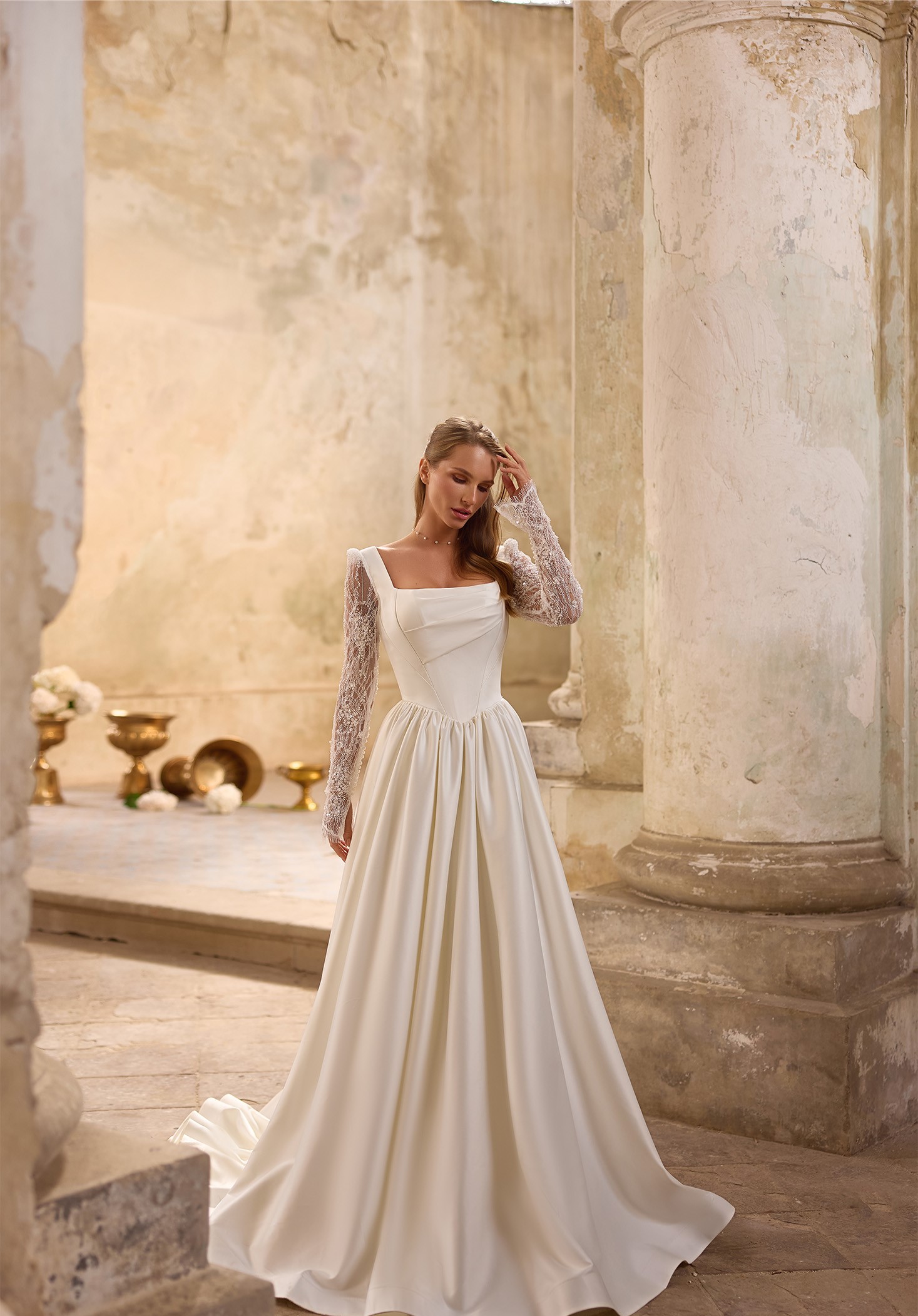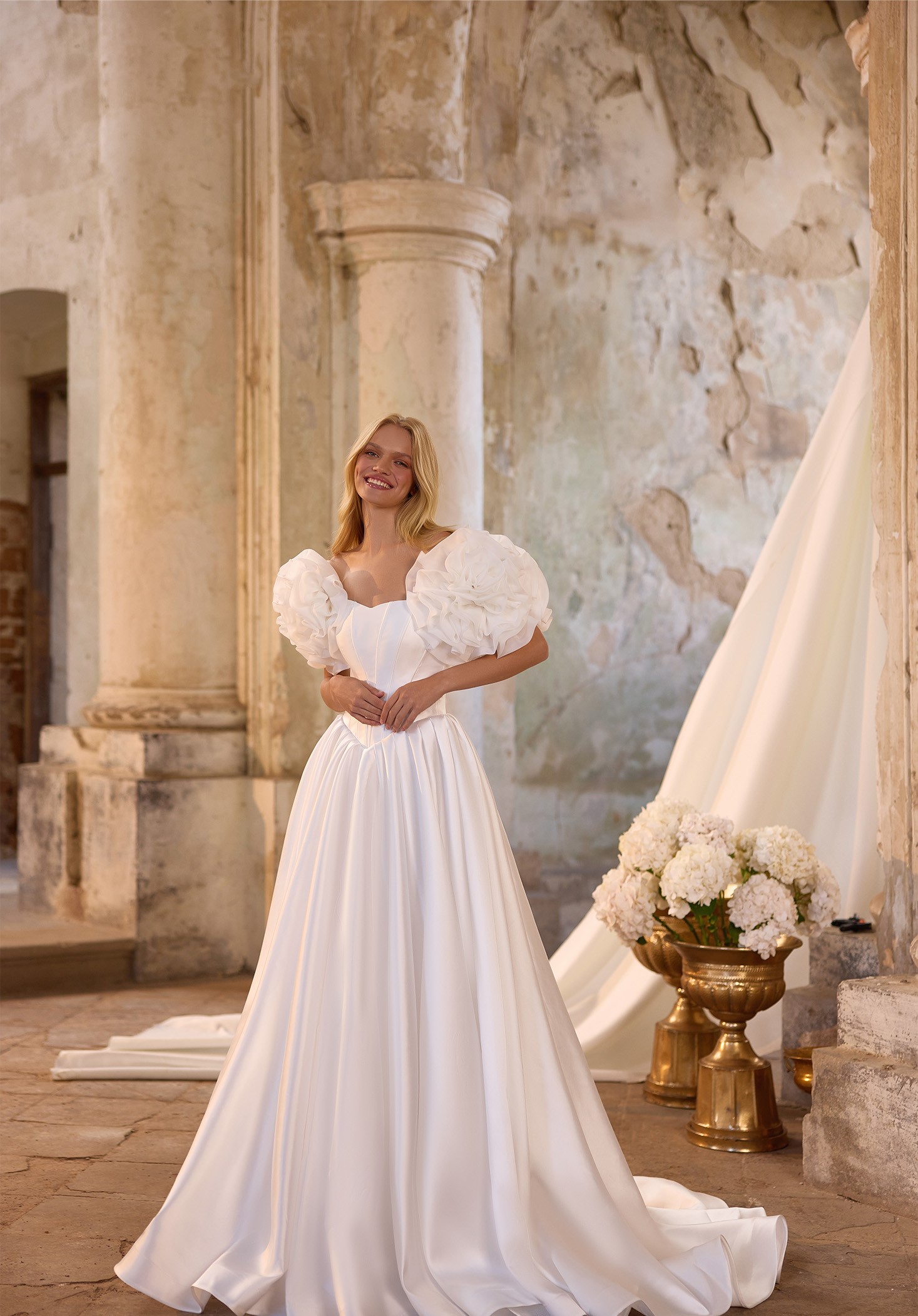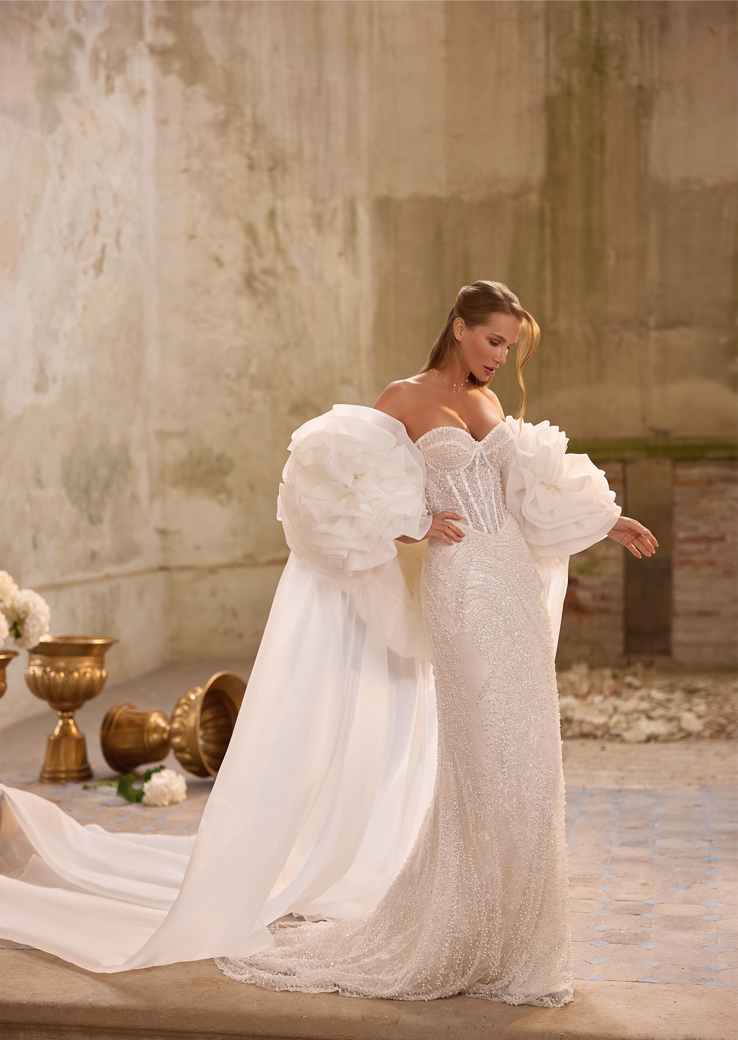 Step into a world where love is woven into every stitch. Our collection is designed for the bride who dreams of floating down the aisle in timeless beauty. A delicate lace added will grace each silhouette, while the chapel train follows like a whisper of romance. Complete your look with a refined bolero, creating a vision of true bridal perfection—your “Pure Promise” brought to life!